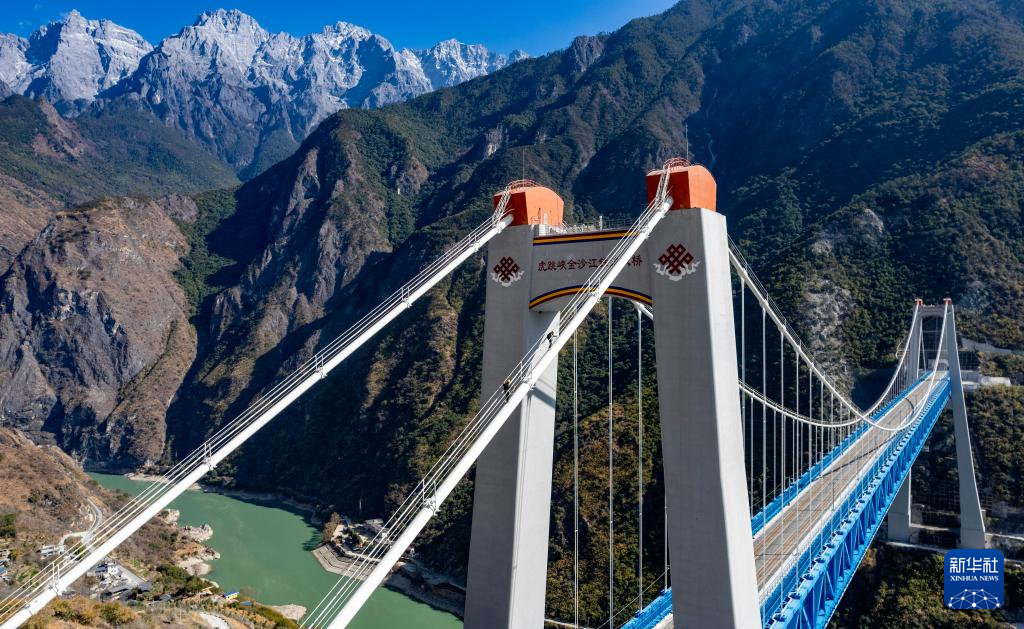 虎跳峽金沙江鐵路大橋位于云南麗江與香格里拉交界處的虎跳峽景區(qū),橫跨金沙江,全長882.5米,主跨達(dá)660米,橋面離江面垂直距離約250米,大橋兩端分別與玉龍雪山隧道和哈巴雪山隧道連接,是麗香鐵路重點(diǎn)控制性工程。