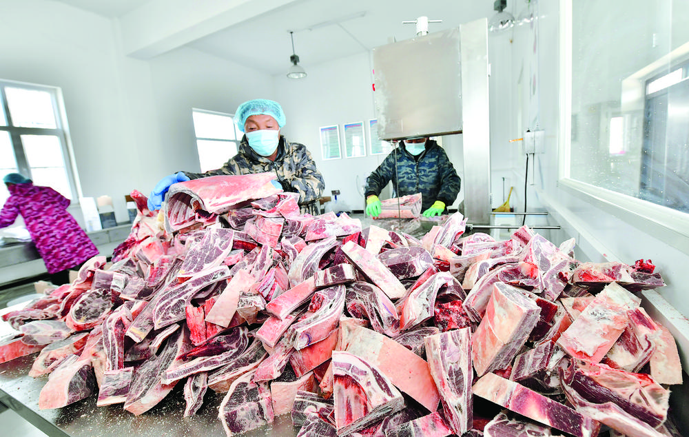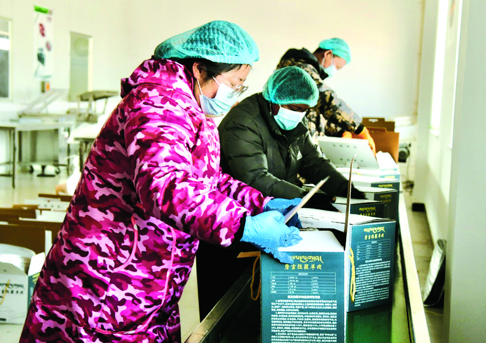 1月24日,記者走進青海省海西蒙古族藏族自治州格爾木市唐古拉山鎮(zhèn)長江源村的唐古拉牦牛、藏羊精深加工基地,車間內屠宰、冷凍、包裝等功能區(qū)劃分明確,一應俱全。忙碌的生產線上,身穿食品加工工作服的工作人員正沿著流水線緊張有序地工作。剔骨、粗分完成后,工作人員再按不同部位精準分割、整齊打包,等待銷售發(fā)貨,全力保障年貨產品的市場供應。長江源村駐村第一書記梁亮告訴記者:“臨近春節(jié),牛羊肉禮盒備受青睞,浙江、江蘇、西藏等地的訂單也比平時增加了很多。牛羊肉產業(yè)鏈的延伸,成為了我們長江源村鄉(xiāng)村振興的又一把‘金鑰匙’?!?/p>