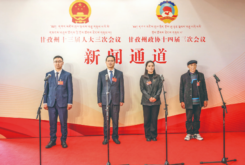 1月30日下午,甘孜州十三屆人大三次會(huì)議“代表通道”正式開啟。瀘定縣委副書記、縣長王蕾,得榮縣日雨鎮(zhèn)黨委書記江潔,亞丁景區(qū)管理局游客服務(wù)科科長余光榮,瀘定縣磨西鎮(zhèn)青岡坪村支部書記、村委會(huì)主任呂東才四位州人大代表在現(xiàn)場回應(yīng)社會(huì)關(guān)切熱點(diǎn)。