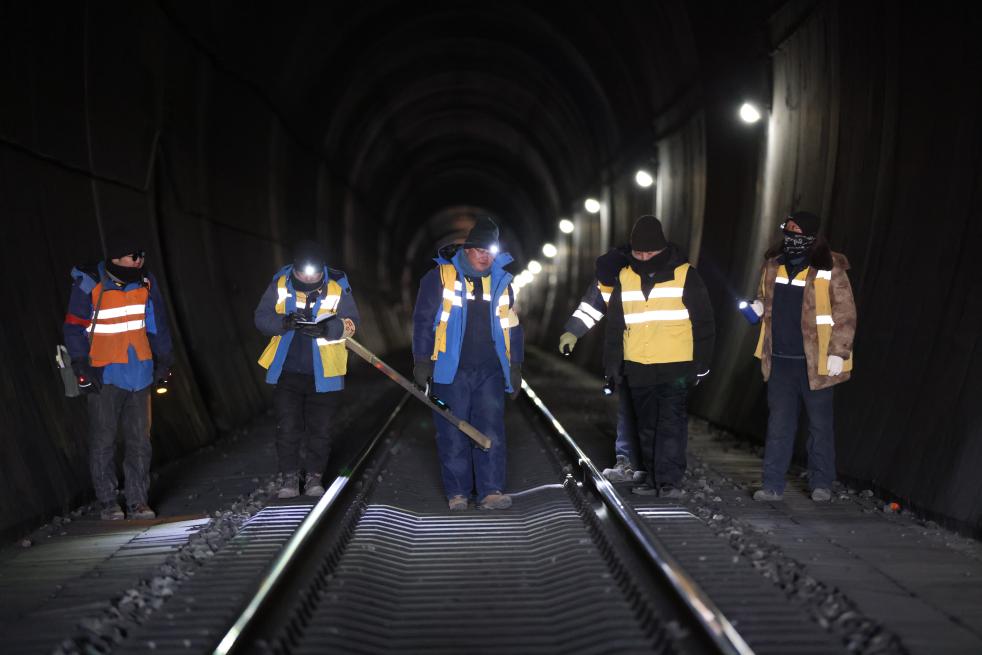 “路基變化、氣候波動(dòng)……這些因素都是研究凍土影響的關(guān)鍵數(shù)據(jù),一絲一毫的變化都會(huì)導(dǎo)致線路出現(xiàn)不同的問題。”工人們來到作業(yè)地點(diǎn)開始上道作業(yè),張福強(qiáng)掏出一本快被翻爛的筆記本,一邊記下這次養(yǎng)護(hù)的氣候及線路數(shù)據(jù),一邊和工友們向隧道深處走去。