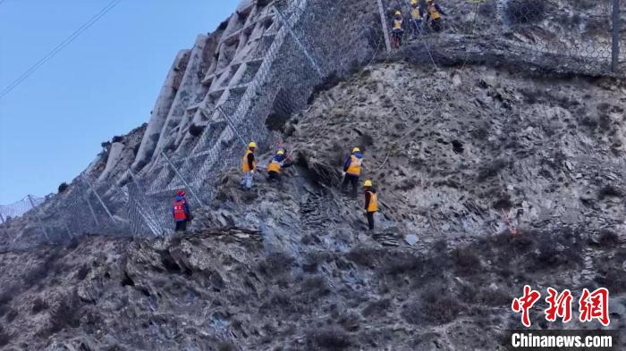 踩著積雪,沿著將近70度的陡坡攀爬一個多小時后,“攀巖小隊(duì)”終于抵達(dá)距川青鐵路垂直高度達(dá)500多米的巡查點(diǎn)。寒風(fēng)凜冽,大家顧不上休息,抓緊掃除山上的危巖,檢查防護(hù)網(wǎng)安裝情況。這是近日發(fā)生在四川省阿壩州川青鐵路沿線的一幕。