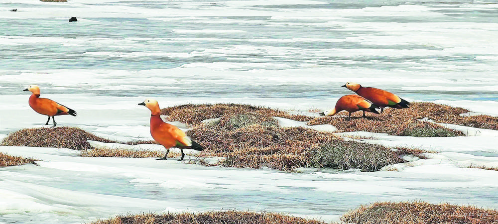 青海隆寶灘國(guó)際重要濕地迎來(lái)春天首批赤麻鴨