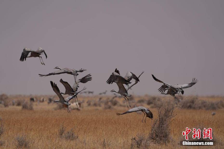 候鳥(niǎo)遷徙季:大批灰鶴聚集青海省都蘭縣
