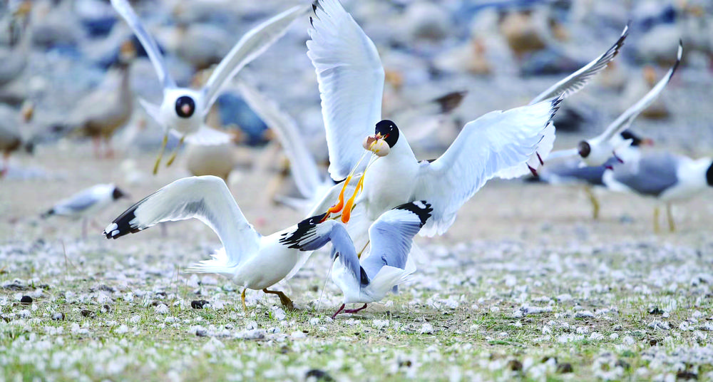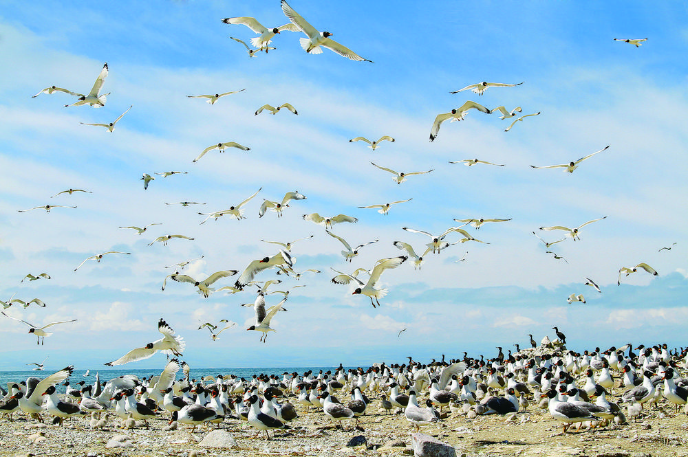 候鳥(niǎo)北歸,青海湖又將進(jìn)入一年中最美麗的時(shí)節(jié)。浮想盛夏時(shí)節(jié),棕頭鷗、漁鷗、斑頭雁、普通鸕鶿等水鳥(niǎo),或成群在低空中擺著“隊(duì)形”,或“拖家?guī)Э凇痹谒嫔湘覒蛲嫠?,或和洄游的湟魚(yú)上演魚(yú)鷗“大戰(zhàn)”,碧波蕩漾的青海湖將美得如詩(shī)如畫(huà)。(本版圖片除署名外,其他均由青海湖景區(qū)保護(hù)利用管理局提供)