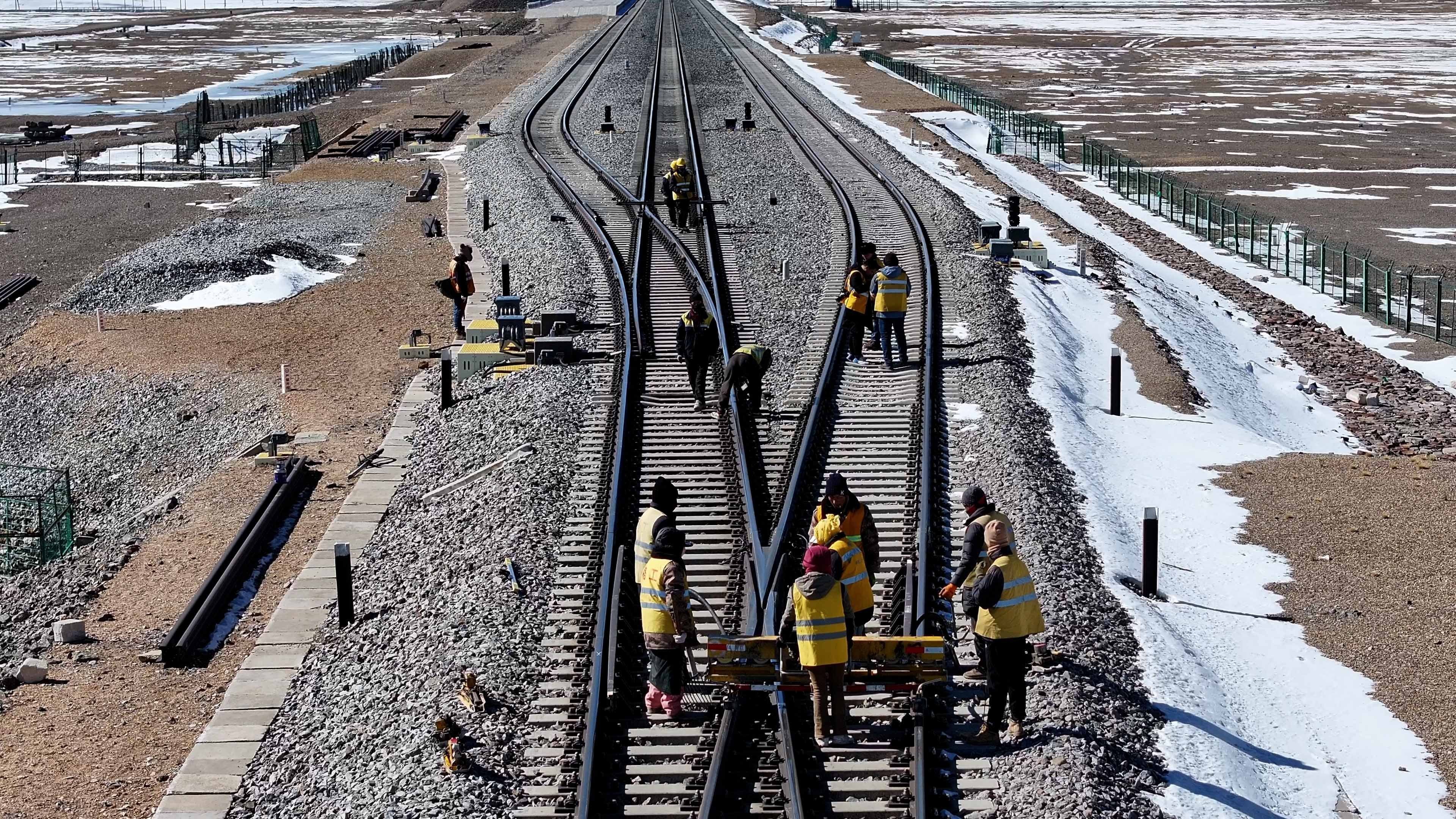 施工時(shí)間有限,工人們的速度不斷加快。馬祎俊指揮安排好幾名鐵路工人,大家各司其職,迅速開(kāi)始動(dòng)手維護(hù)鐵路鋼軌。天氣讓鋼軌比冰塊更加寒冷。隔著佩戴的線手套,依舊能感受到風(fēng)和鐵軌上的寒冷鉆進(jìn)手套里,沁到骨頭里。