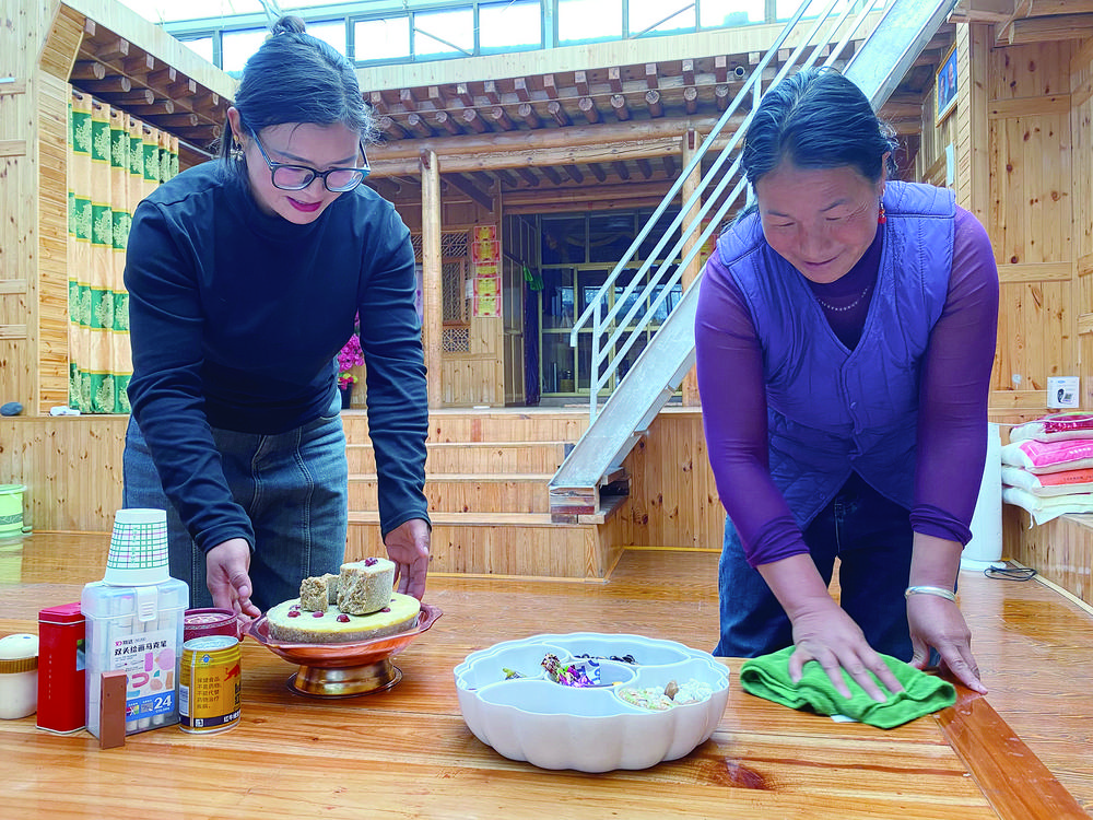 多杰卓瑪正和姑姑準備品嘗藏式點心。欒雨嘉 攝