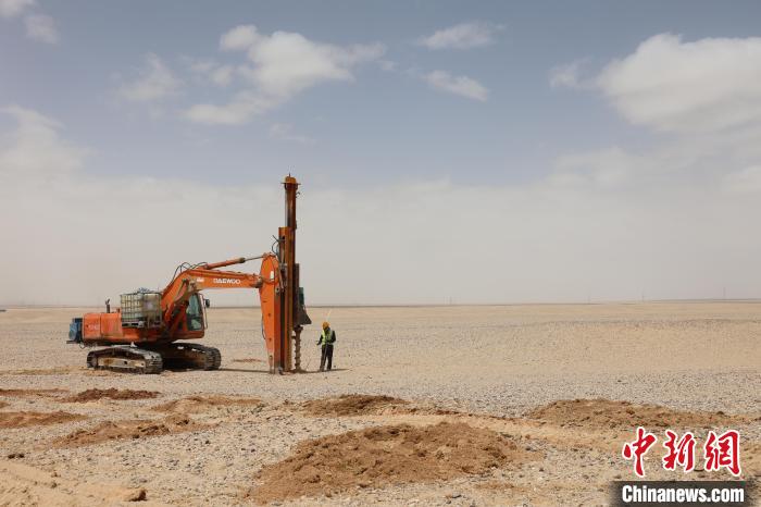 圖為項(xiàng)目施工現(xiàn)場機(jī)械打樁孔。張?zhí)砀?攝