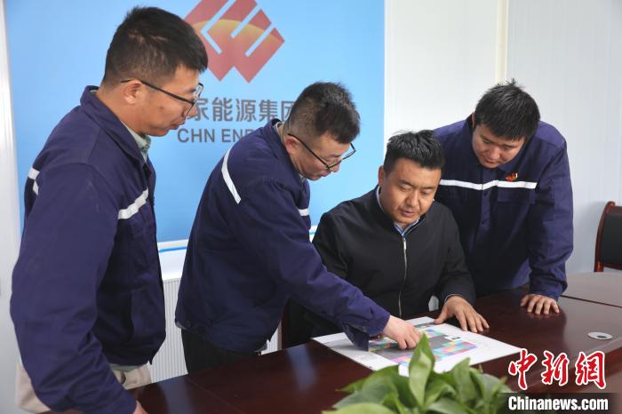 圖為工作人員研究施工進度。張?zhí)砀?攝