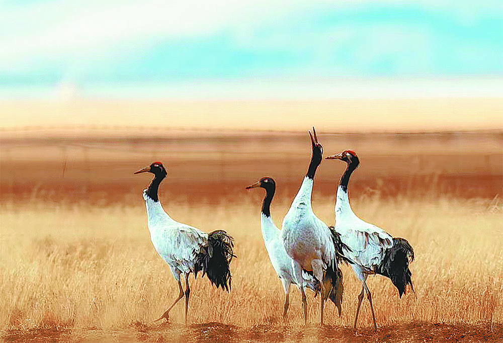 隆寶國(guó)家級(jí)自然保護(hù)區(qū)的黑頸鶴。資料圖片