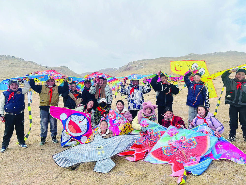 一張張笑臉和風(fēng)箏一樣多彩燦爛。索加鄉(xiāng)小學(xué)提供