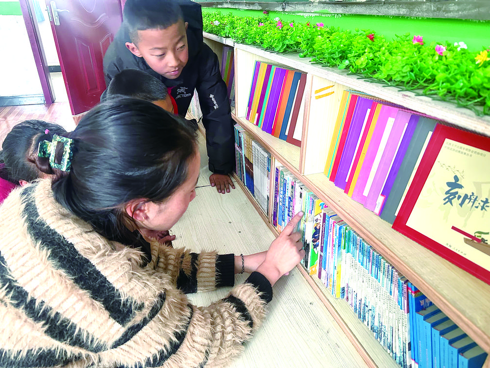 清晨,校園里傳來孩子們的早讀聲,給這個平均海拔4700米的鄉(xiāng)鎮(zhèn)增添了不少活力。因為班級人數(shù)較少,學(xué)校把教室隔開,開辟出一個很受孩子們喜愛的看書、休息和寫作業(yè)的區(qū)域?!艾F(xiàn)在學(xué)校為每個班級配備了希沃白板,現(xiàn)代化教學(xué)設(shè)備的引入,不僅豐富了教學(xué)手段,也使得課堂教學(xué)變得更加生動、直觀和高效。我們可以通過希沃白板展示課件、播放視頻、進行現(xiàn)場互動,極大地提升了學(xué)生的學(xué)習(xí)興趣和參與度?!闭讨魅尾槿照f。