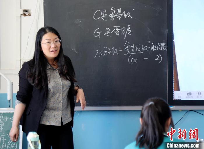 圖為江蘇援青教師王景花在青海省海南藏族自治州高級中學講生物課。張?zhí)砀?攝