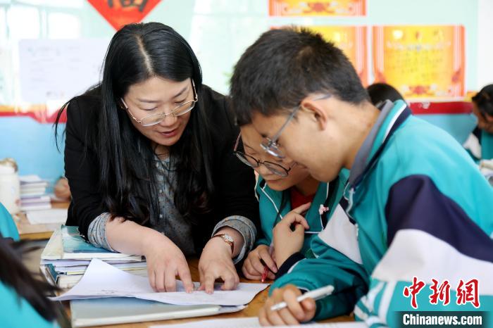 圖為江蘇援青教師王景花在青海省海南藏族自治州高級中學輔導學生。張?zhí)砀?攝