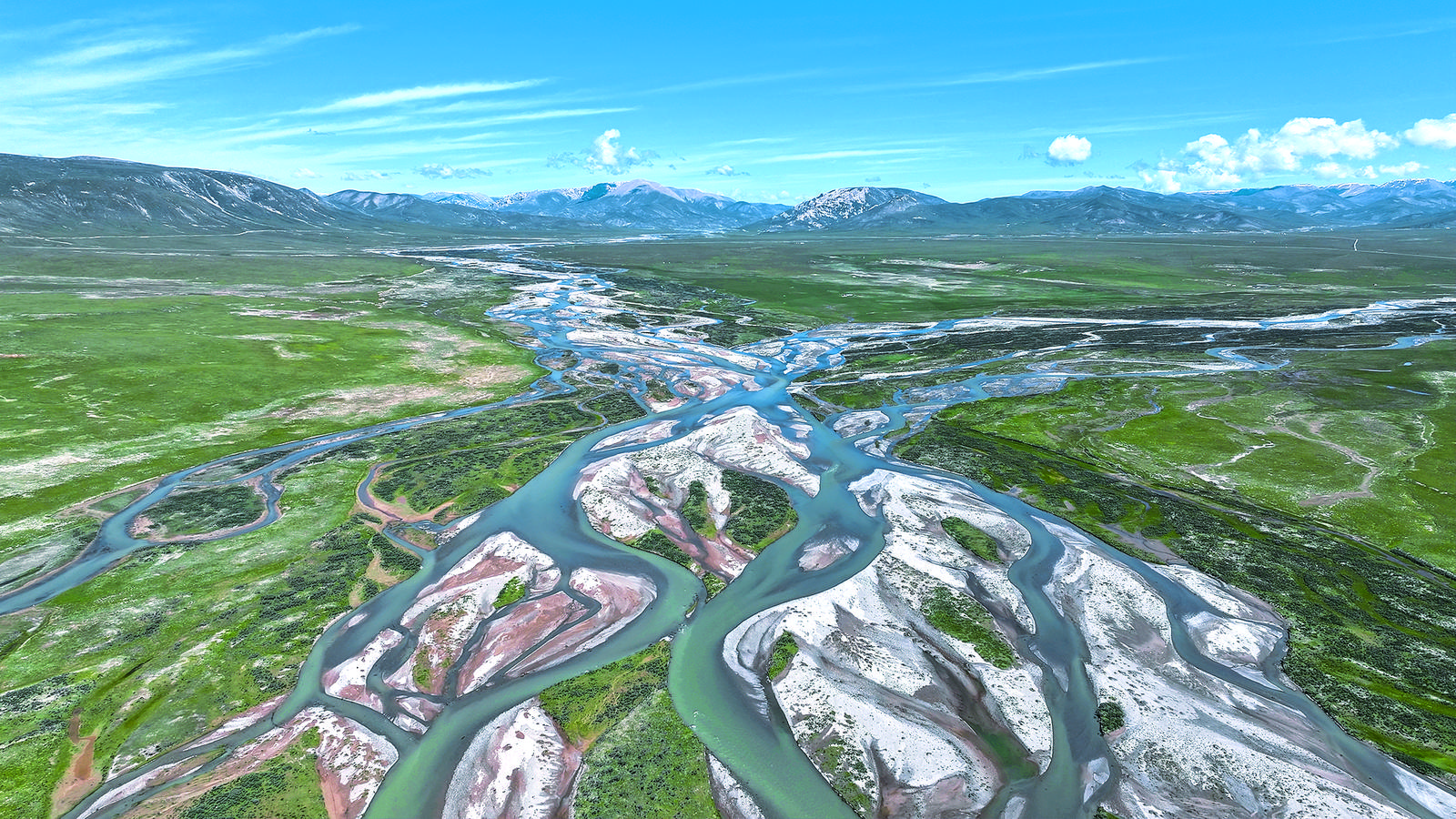 盛夏的清晨,從海西蒙古族藏族自治州天峻縣出發(fā),沿布哈河逆流而上,行進的方向,正是青海湖湟魚(裸鯉)洄游的方向。從高處俯瞰,布哈河的一條條分岔猶如人體血管,肆意流淌,但最終又歸為一處,河道兩旁甚至河道內(nèi)的淺灘,密密麻麻分布著灌木林,林木簌、簌、簌……響動著,只見馬鹿林中穿梭。