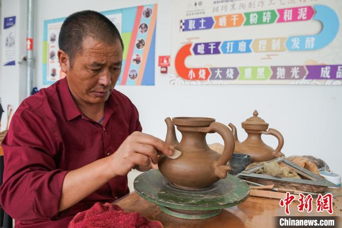 7月18日,在班瑪黑陶培訓及體驗中心,學員正在制作班瑪黑陶作品。中新社記者 馬銘言 攝
