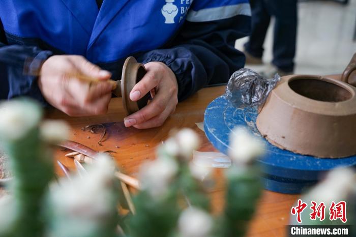 7月18日,在班瑪黑陶培訓及體驗中心,學員正在制作班瑪黑陶器皿。中新社記者 馬銘言 攝