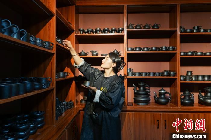 7月18日,在班瑪黑陶培訓及體驗中心,工作人員挑選創(chuàng)新制作的班瑪黑陶產(chǎn)品。中新社記者 馬銘言 攝