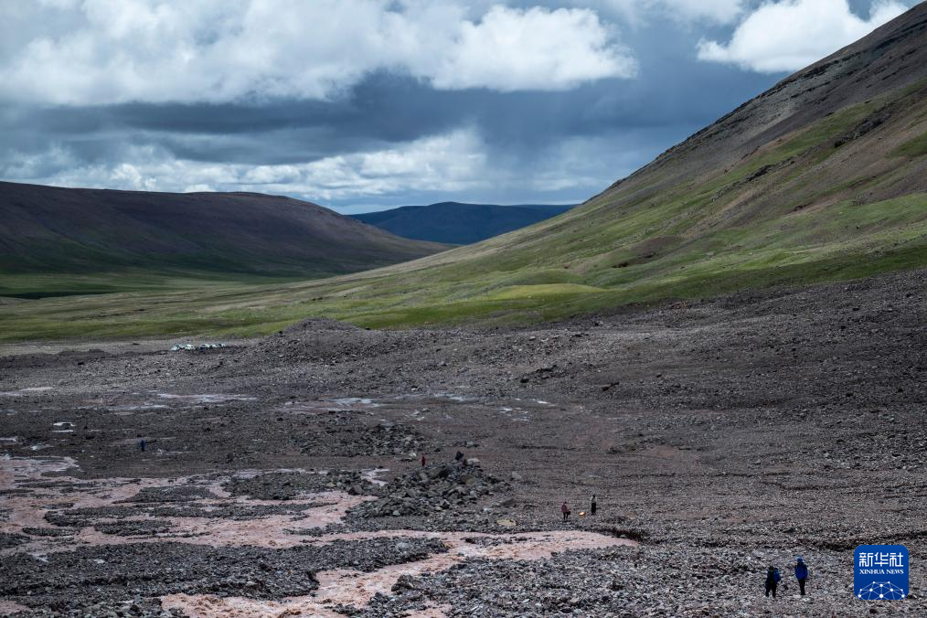 7月25日,在冬克瑪?shù)妆?,科考隊員在前往采集點路途中。新華社記者 伍志尊 攝