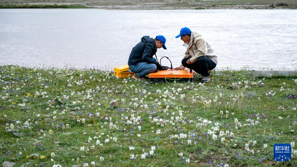 7月23日,在聶洽曲的草灘上,科考隊員收集樣本。新華社發(fā) 杜笑微 攝