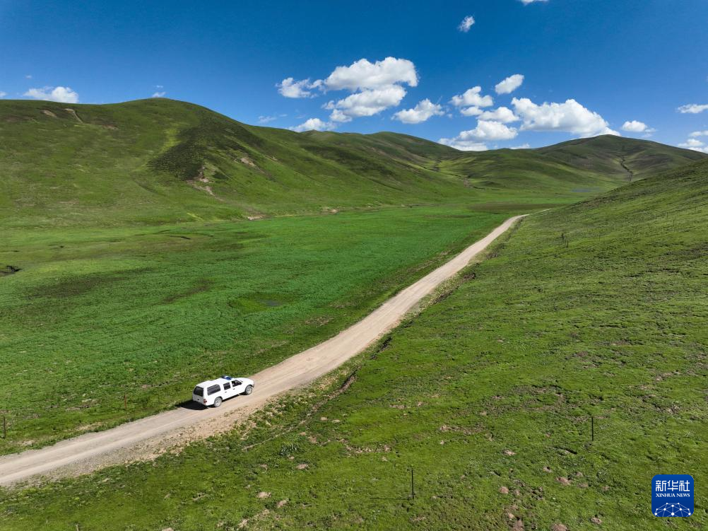 7月31日,青海省果洛藏族自治州達(dá)日縣窩賽鄉(xiāng)衛(wèi)生院醫(yī)療巡回車前往牧民夏季草場(chǎng)開展公共衛(wèi)生服務(wù)(無人機(jī)照片)。新華社記者 張龍 攝
