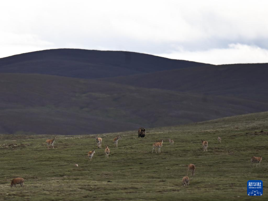 7月7日,在可可西里卓乃湖區(qū)域,藏羚羊在活動。 新華社記者 杜笑微 攝