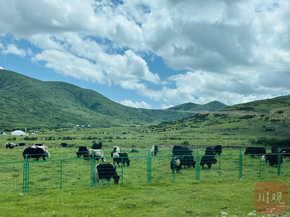 藍(lán)天白云下,綠蔭草場上,成群的牦牛像“黑珍珠”一般點綴在“綠色”海洋里。記者一行來到了“牦牛之鄉(xiāng)”紅原縣,這里是阿壩州唯一的純畜牧業(yè)縣。紅原縣現(xiàn)有天然草原面積755.88萬畝,畜牧業(yè)為當(dāng)?shù)匕傩諑硎找娴耐瑫r,也對生態(tài)環(huán)境保護(hù)提出了挑戰(zhàn)。