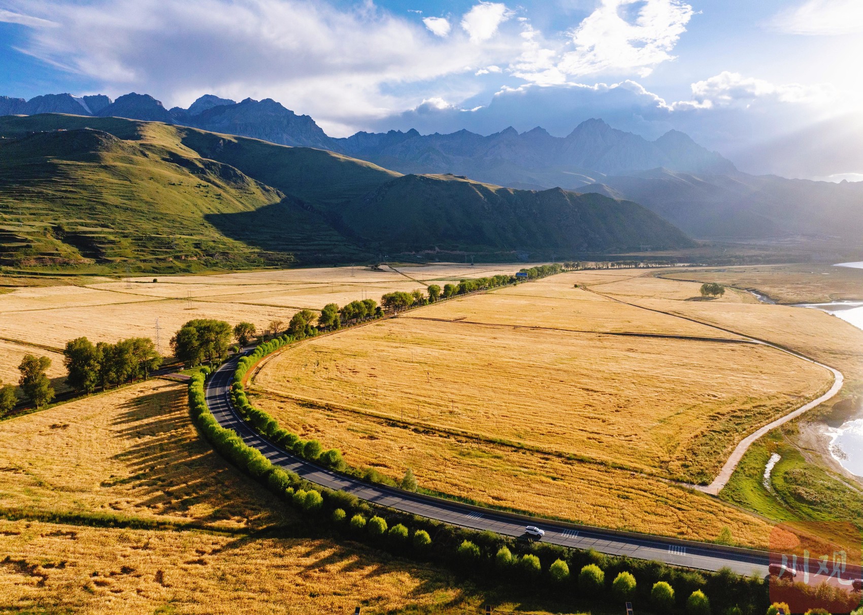 國道317線上的“百里青稞長廊”。