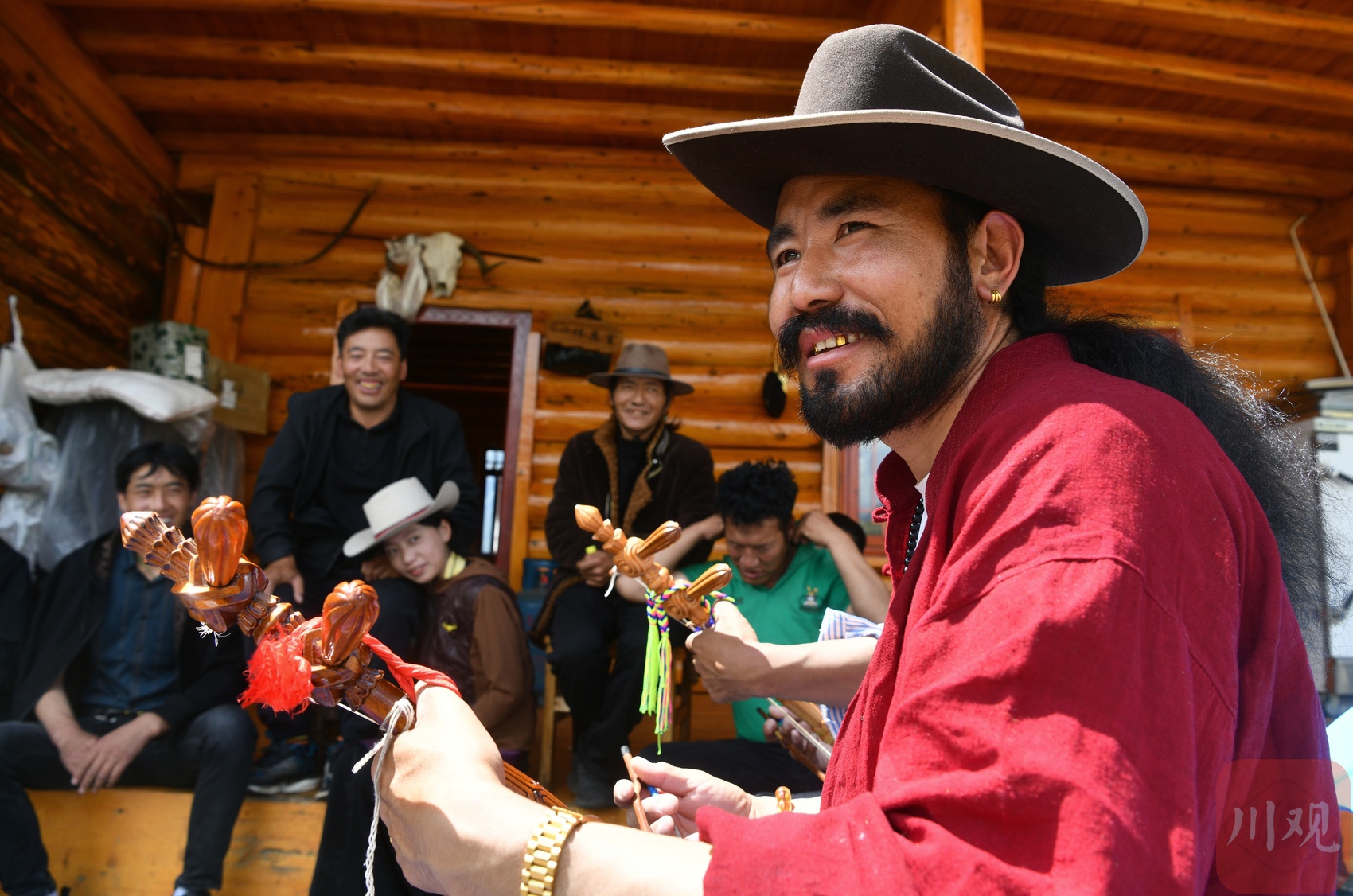 格木村村民的日常生活,在藍(lán)天下彈唱巴塘弦子。