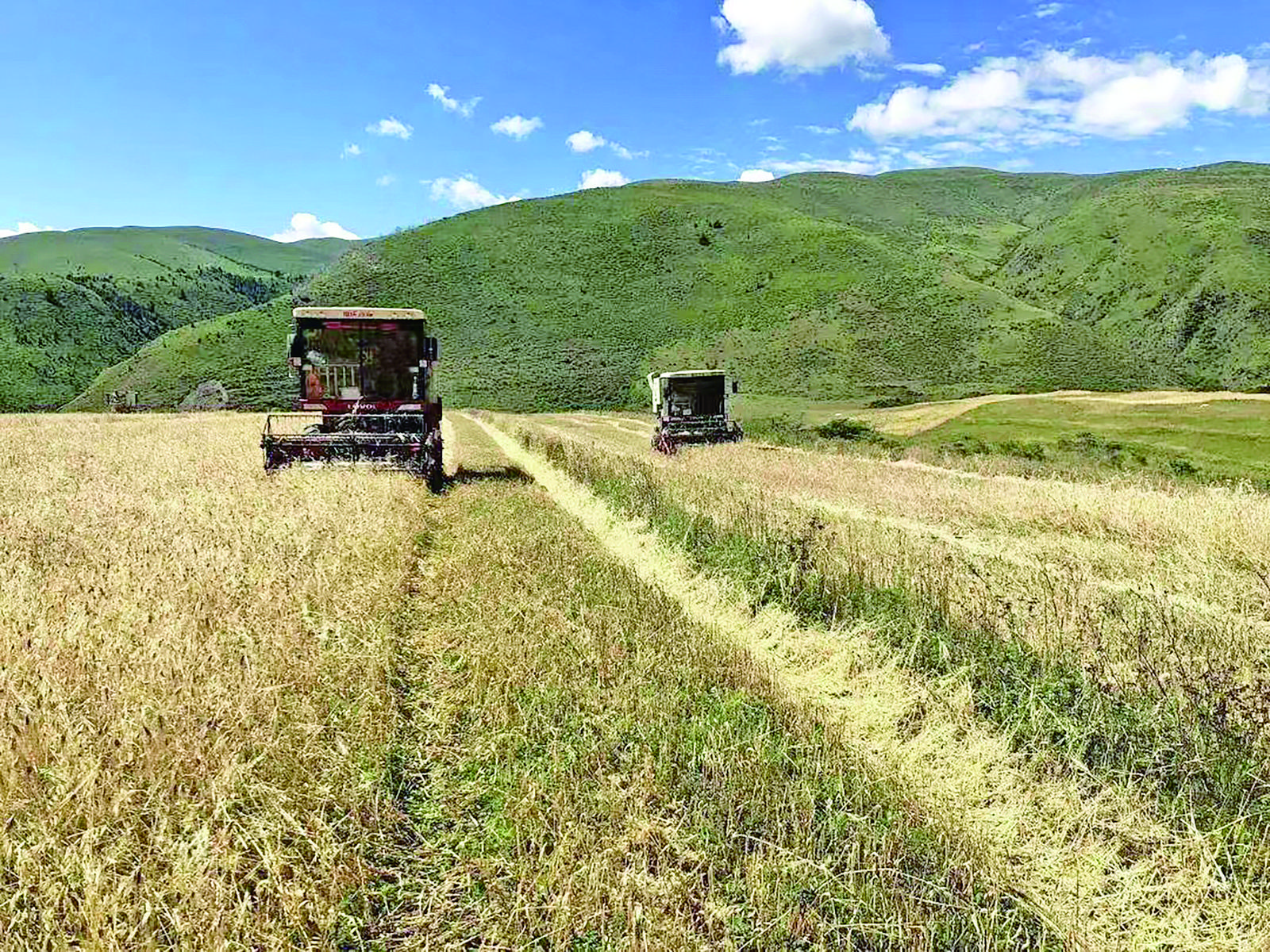 趙全邦說:“基地采取整合耕地資源,開展統(tǒng)一耕種,統(tǒng)一田間管理,統(tǒng)一收割的形式開展經(jīng)營,2023年成功收獲青稞10.5萬公斤。這期間,通過春播、秋收和日常田間管理等間接帶動114戶農(nóng)戶到合作社務工,讓牧民群眾在家門口有了就業(yè)增收的機會?!?/p>