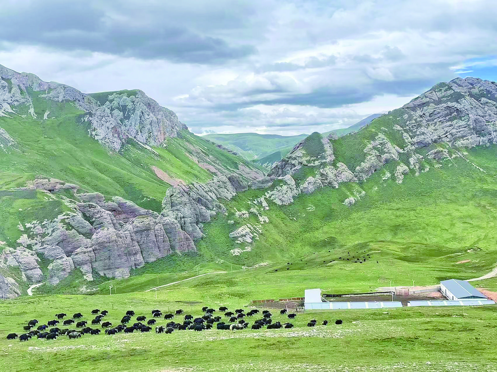 走進著曉鄉(xiāng)交西村村集體經(jīng)濟合作社,只見高標準畜棚、儲草棚等功能用房依山而建,錯落有致,不遠處的草場上顆顆“黑珍珠”悠閑地吃著草。