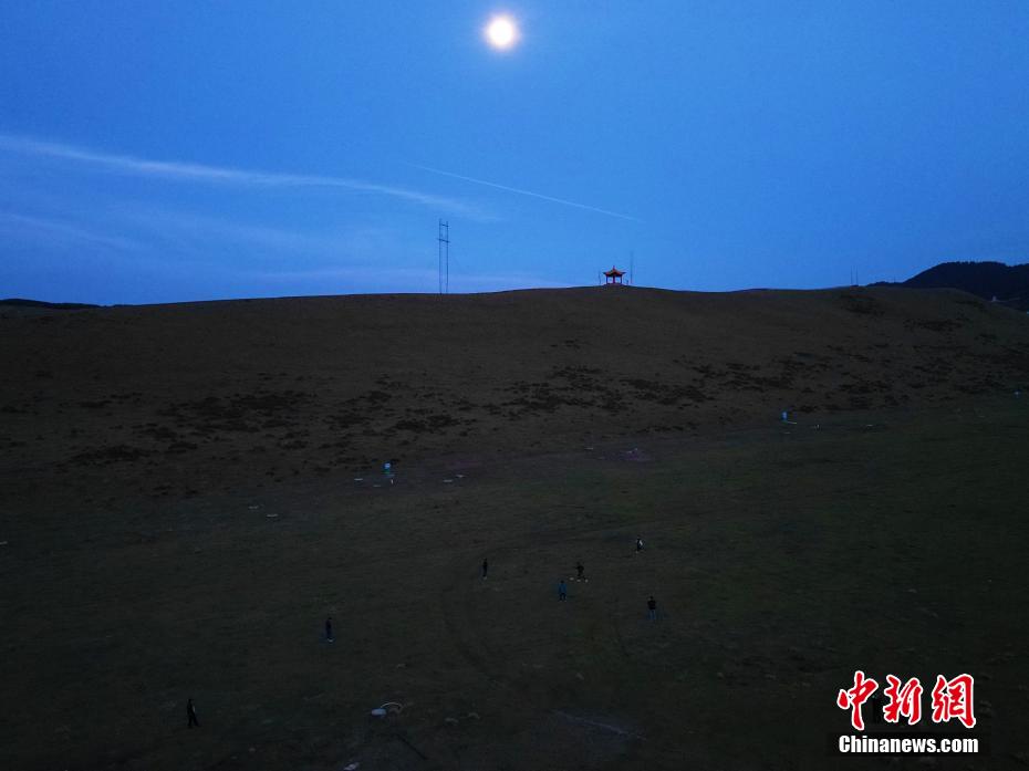 10月15日晚,在甘肅省甘南藏族自治州合作市一牧場(chǎng)內(nèi),甘南九二聯(lián)隊(duì)足球隊(duì)員在月下訓(xùn)練。該隊(duì)隊(duì)員因?yàn)槎荚诓煌胤焦ぷ鳎蚤L(zhǎng)期自我尋找草場(chǎng)、牧區(qū)等近場(chǎng)地訓(xùn)練,高原草場(chǎng)是他們訓(xùn)練的一大優(yōu)勢(shì)。