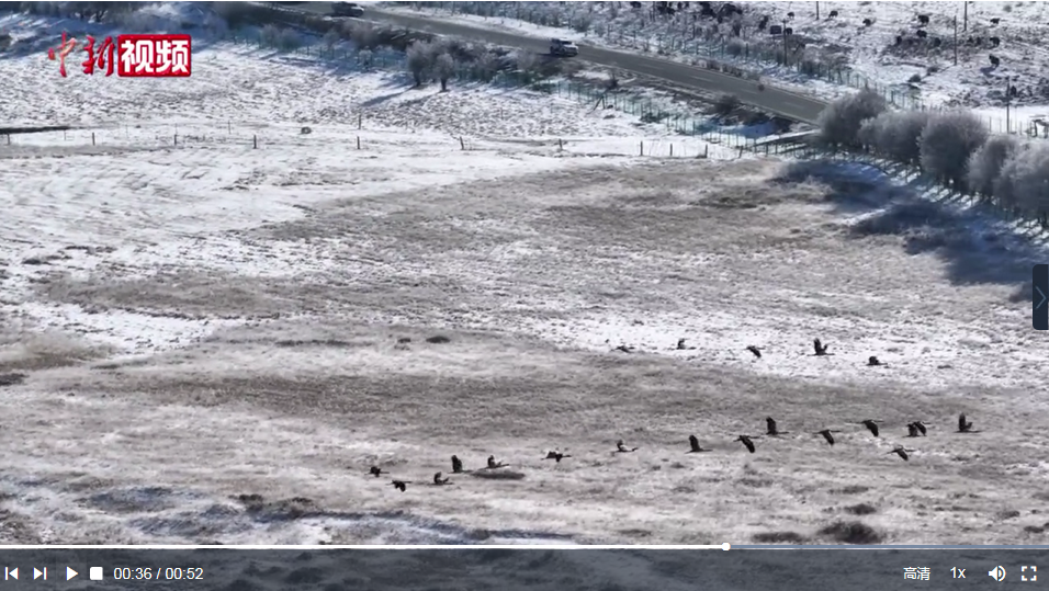 近日,在四川省阿壩州紅原縣月亮灣濕地成群的黑頸鶴遷徙“大軍”在空中翩翩起舞,它們時(shí)而排成一排,時(shí)而散開,上演了一場高空“飛行大片”。