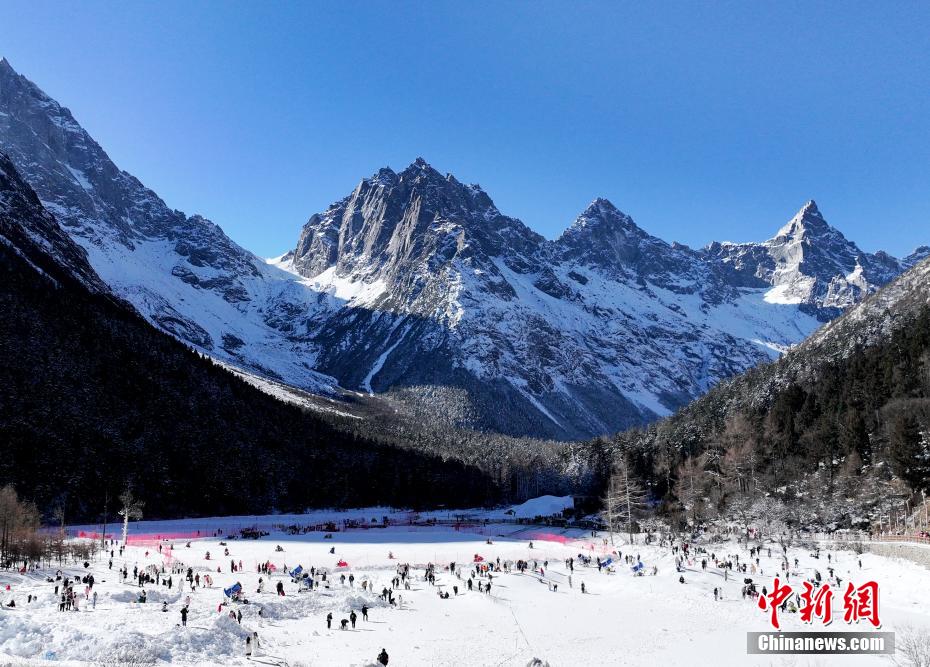 圖為游客在畢棚溝冰雪世界游玩。(無人機(jī)照片)中新社記者 安源 攝
