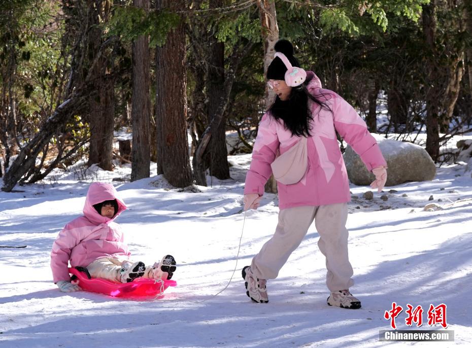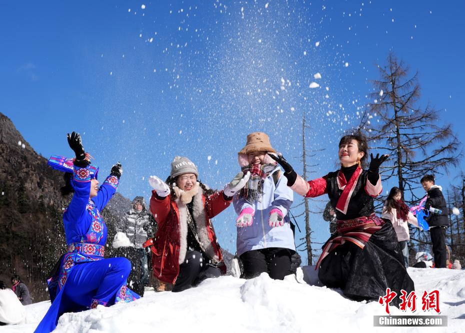 圖為游客在雪地里玩雪。中新社記者 安源 攝
