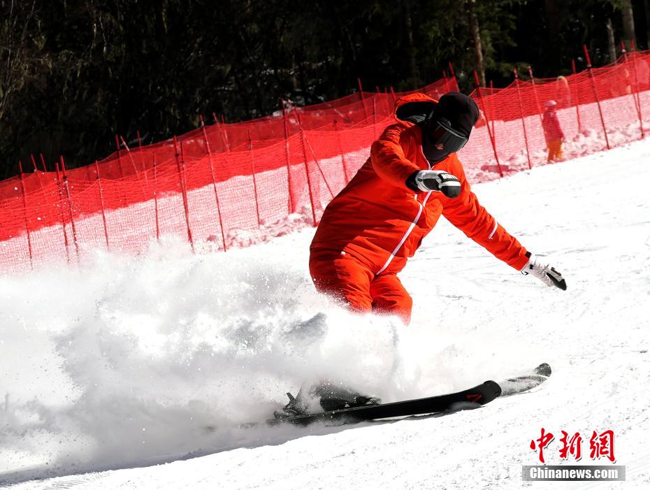 圖為滑雪愛好者在滑雪場(chǎng)滑雪。中新社記者 安源 攝