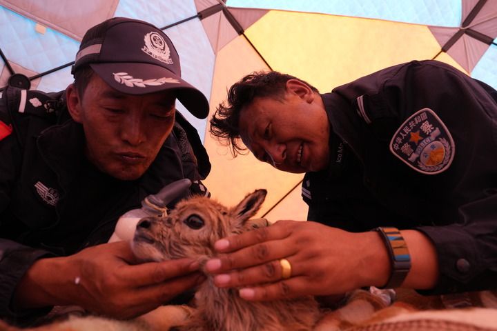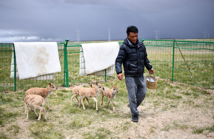 在索南達(dá)杰保護站駐站的巡山隊員江措告訴記者,在保護站后面的網(wǎng)圍欄內(nèi),有隊員們從卓乃湖救助回來的小藏羚羊。