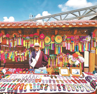 在果洛藏貢麻村舉行的綠色農(nóng)畜及文創(chuàng)產(chǎn)品推介會(huì)現(xiàn)場(chǎng)。(資料圖片)