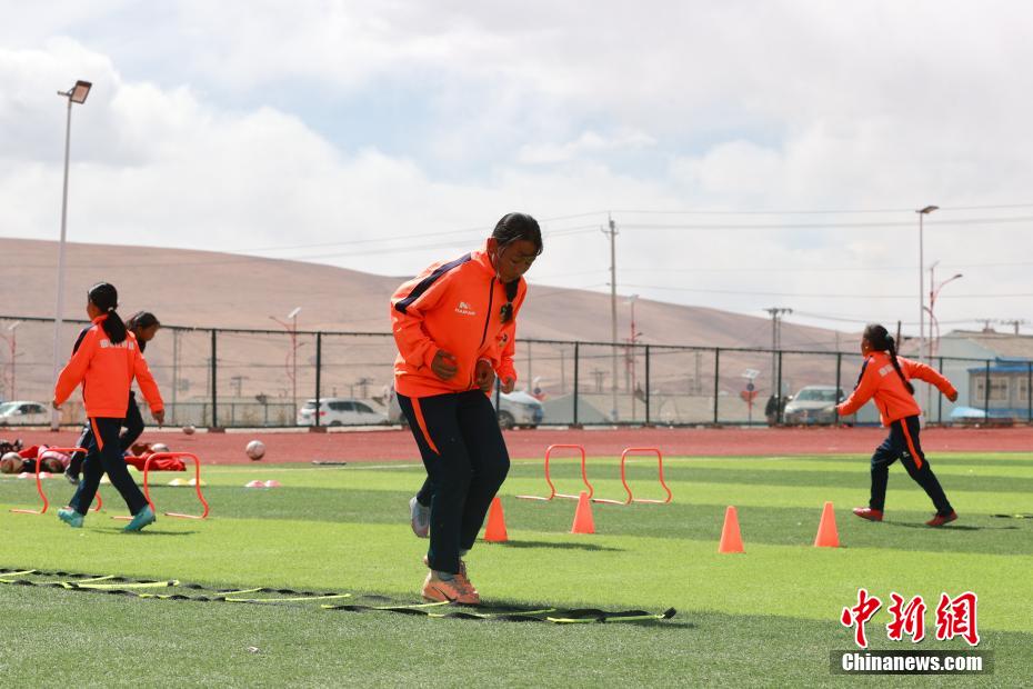 4月13日,青海省玉樹(shù)藏族自治州曲麻萊縣青少年足球訓(xùn)練基地內(nèi),女足隊(duì)員進(jìn)行體能訓(xùn)練。曲麻萊縣地處黃河源頭,平均海拔超過(guò)4500米。近年來(lái),該縣以足球青訓(xùn)為抓手,打造青藏高原青少年足球發(fā)展典范。中新社記者 薛蒂 攝