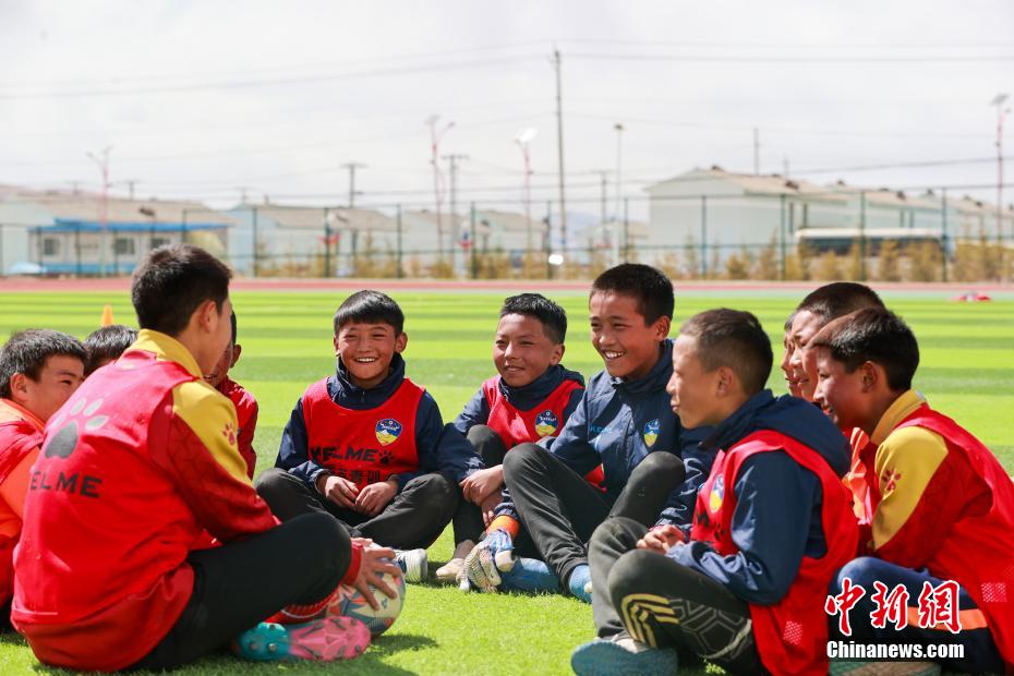 4月13日,青海省玉樹(shù)藏族自治州曲麻萊縣青少年足球訓(xùn)練基地內(nèi),球員訓(xùn)練間隙交流。曲麻萊縣地處黃河源頭,平均海拔超過(guò)4500米。近年來(lái),該縣以足球青訓(xùn)為抓手,打造青藏高原青少年足球發(fā)展典范。中新社記者 薛蒂 攝