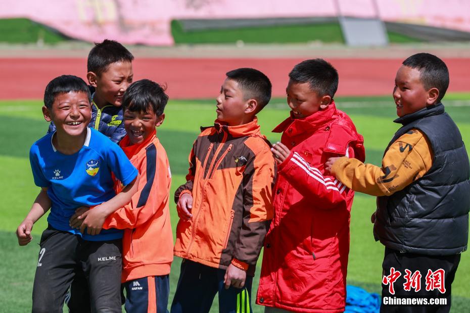 4月13日,青海省玉樹(shù)藏族自治州曲麻萊縣青少年足球訓(xùn)練基地內(nèi),球員訓(xùn)練間隙嬉戲玩耍。曲麻萊縣地處黃河源頭,平均海拔超過(guò)4500米。近年來(lái),該縣以足球青訓(xùn)為抓手,打造青藏高原青少年足球發(fā)展典范。中新社記者 薛蒂 攝