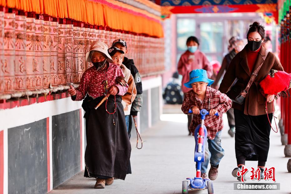 4月12日,在青海省玉樹藏族自治州玉樹市,民眾在瑪尼石經(jīng)城祈福。據(jù)了解,玉樹嘉那瑪尼石的形成和發(fā)展已有300多年的歷史,嘉那瑪尼石經(jīng)城內(nèi)石刻數(shù)量多達(dá)25億塊,2002年被載入吉尼斯世界紀(jì)錄,成為世界最大的瑪尼堆。中新社記者 薛蒂 攝