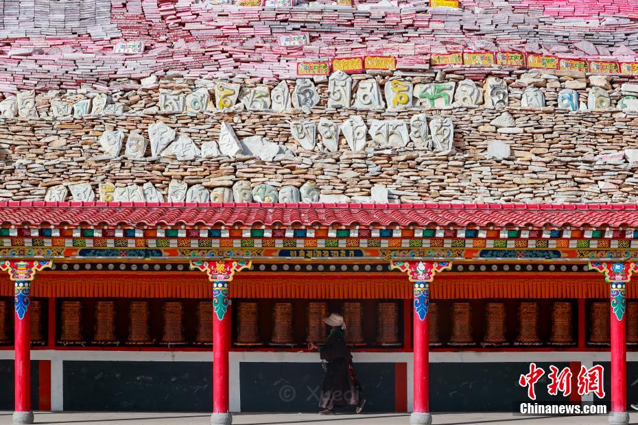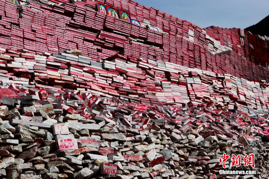 4月12日,在青海省玉樹藏族自治州玉樹市,瑪尼石堆一景。據(jù)了解,玉樹嘉那瑪尼石的形成和發(fā)展已有300多年的歷史,嘉那瑪尼石經(jīng)城內(nèi)石刻數(shù)量多達(dá)25億塊,2002年被載入吉尼斯世界紀(jì)錄,成為世界最大的瑪尼堆。中新社記者 薛蒂 攝