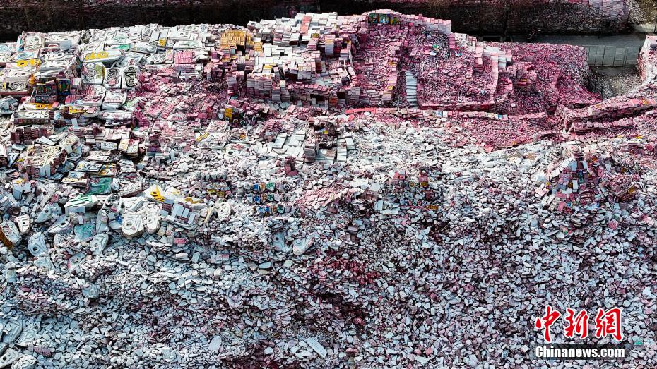 4月12日,在青海省玉樹藏族自治州玉樹市,航拍世界最大瑪尼石堆。據(jù)了解,玉樹嘉那瑪尼石的形成和發(fā)展已有300多年的歷史,嘉那瑪尼石經(jīng)城內(nèi)石刻數(shù)量多達(dá)25億塊,2002年被載入吉尼斯世界紀(jì)錄,成為世界最大的瑪尼堆。中新社記者 薛蒂 攝
