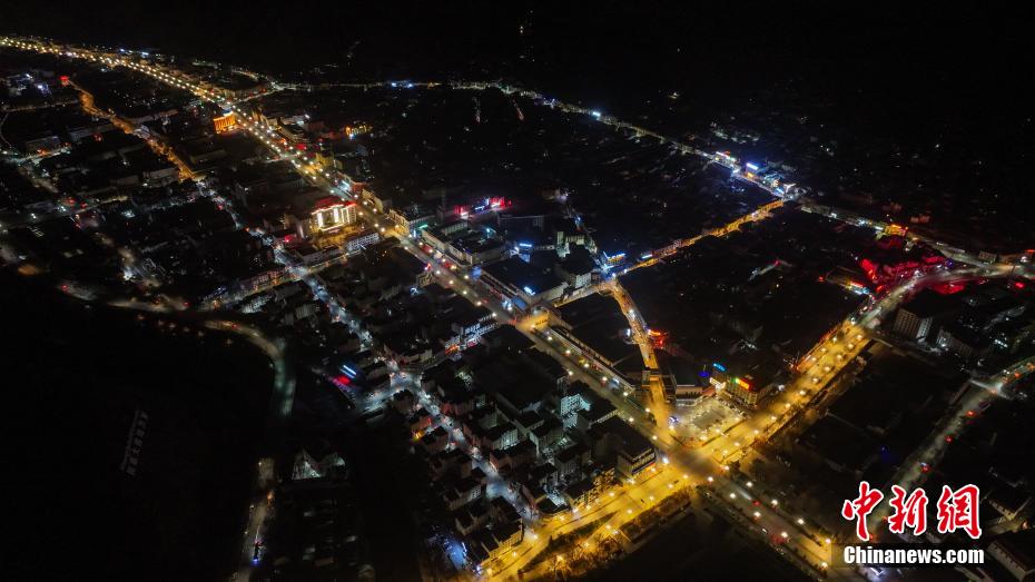 4月14日,航拍青海省玉樹藏族自治州玉樹市夜景。玉樹市地處三江之源,市區(qū)依山而建,扎曲河穿城而過,傳統(tǒng)藏式風(fēng)格建筑與現(xiàn)代化設(shè)施巧妙結(jié)合。(無人機(jī)照片)中新社記者 薛蒂 攝