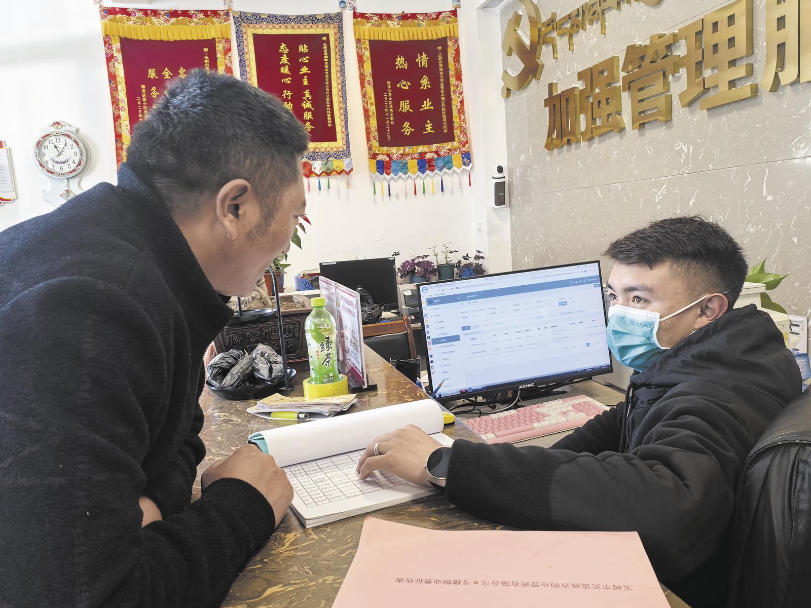 便民服務(wù)中心里,物業(yè)工作人員只用了短短幾分鐘就為伊西南江辦理好了車牌錄入,“不光是錄個(gè)車牌號(hào)快,現(xiàn)在在小區(qū)想解決個(gè)啥問題都又快又方便,都不用出小區(qū)?!币廖髂辖f。