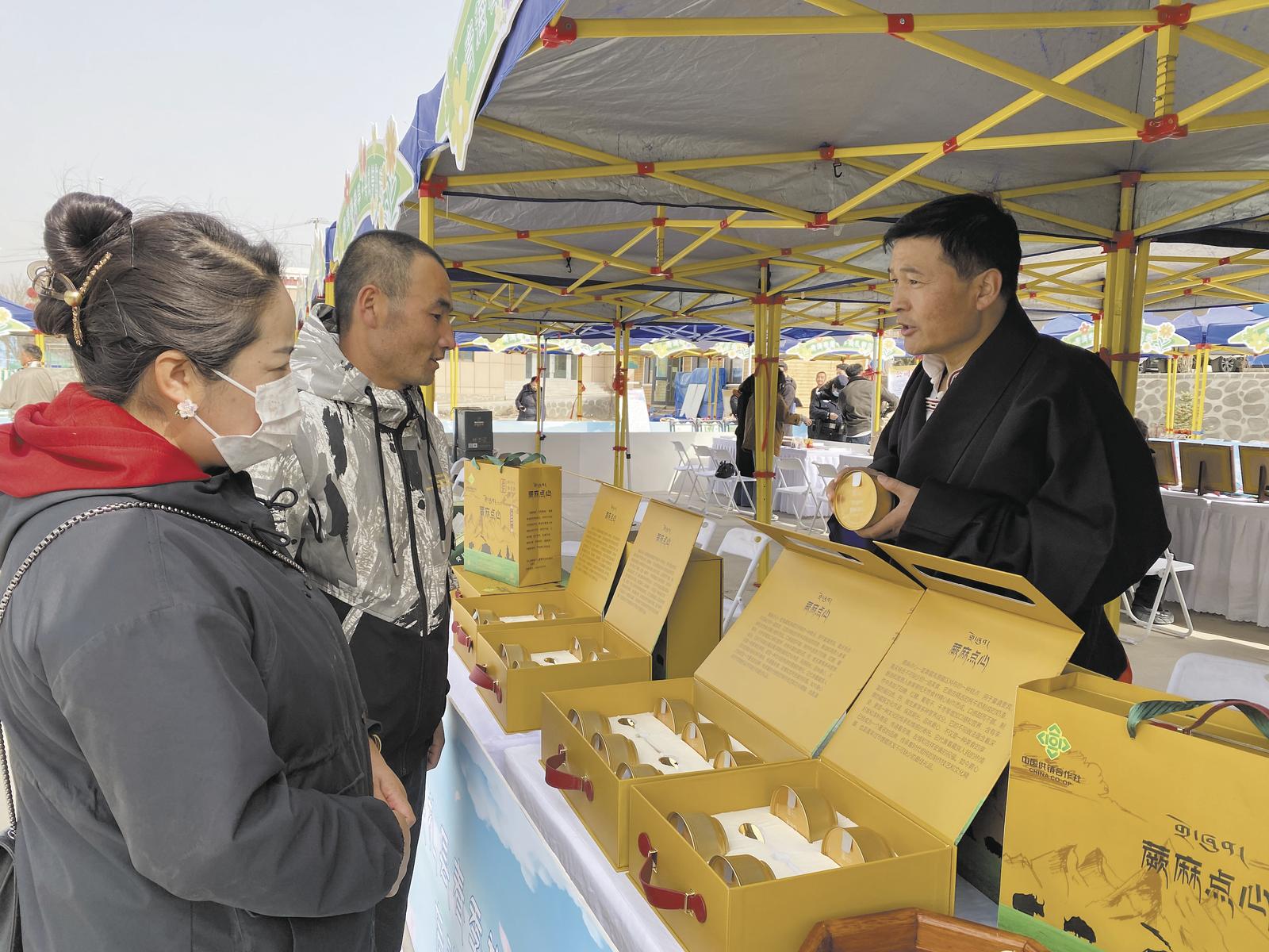 前不久,在尖扎縣舉辦的特色農(nóng)產(chǎn)品展銷會(huì)上,旦正加就帶著他的蕨麻點(diǎn)心禮盒參展了。展銷會(huì)上,他的展位前人潮如織。一位游客品嘗后豎起大拇指:“這點(diǎn)心口感獨(dú)特,一口下去,濃郁的奶香和酸甜的蕨麻味道相互交融,太贊了!”