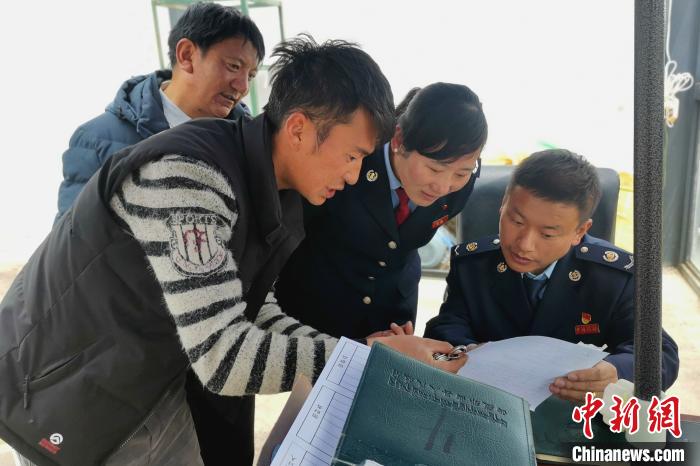 圖為那曲市色尼區(qū)稅務(wù)工作人員到當(dāng)?shù)剞r(nóng)牧企業(yè)了解企業(yè)信息。國(guó)家稅務(wù)總局那曲市色尼區(qū)稅務(wù)局 供圖