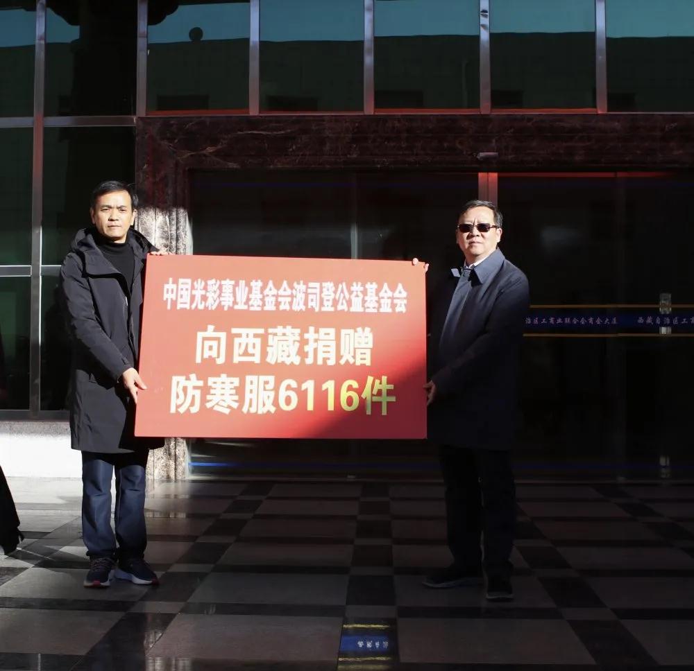 張蓉同志代表西藏自治區(qū)工商聯(lián)、西藏自治區(qū)光彩事業(yè)促進(jìn)會向中國光彩事業(yè)基金會和波司登公益基金會表示感謝,并強(qiáng)調(diào):我們要以“情暖西藏” 防寒服捐贈活動為契機(jī),心懷感恩,把中國光彩事業(yè)基金會、波司登公益基金會對西藏各族人民的關(guān)懷厚愛和殷切期望轉(zhuǎn)化為發(fā)展生產(chǎn)、改善生活的動力,不斷發(fā)展壯大西藏光彩事業(yè)同全國一道全面建成小康社會,創(chuàng)造更加美好的未來。