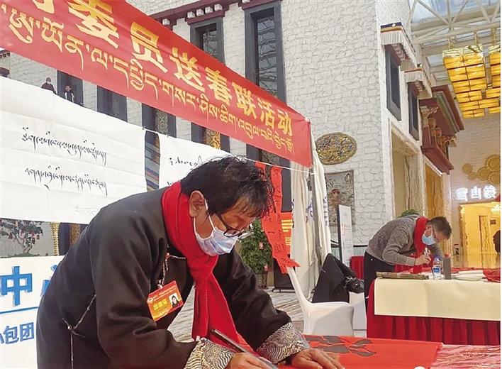 “這次我和各位書(shū)法家集聚于此,為委員們題寫(xiě)春聯(lián)和書(shū)法作品,深感榮幸,這不僅進(jìn)一步弘揚(yáng)了傳統(tǒng)文化,更為大家送上了新春祝福,表達(dá)了美好的新年愿景,也希望我們書(shū)寫(xiě)的作品通過(guò)各位委員傳遞到廣大群眾中,弘揚(yáng)主旋律、傳遞正能量,切實(shí)發(fā)揮文藝激勵(lì)人心的作用。”中國(guó)書(shū)法家協(xié)會(huì)會(huì)員、中國(guó)美術(shù)家協(xié)會(huì)會(huì)員、自治區(qū)書(shū)法家協(xié)會(huì)副主席、拉薩市書(shū)法家協(xié)會(huì)主席高延鴻說(shuō)。