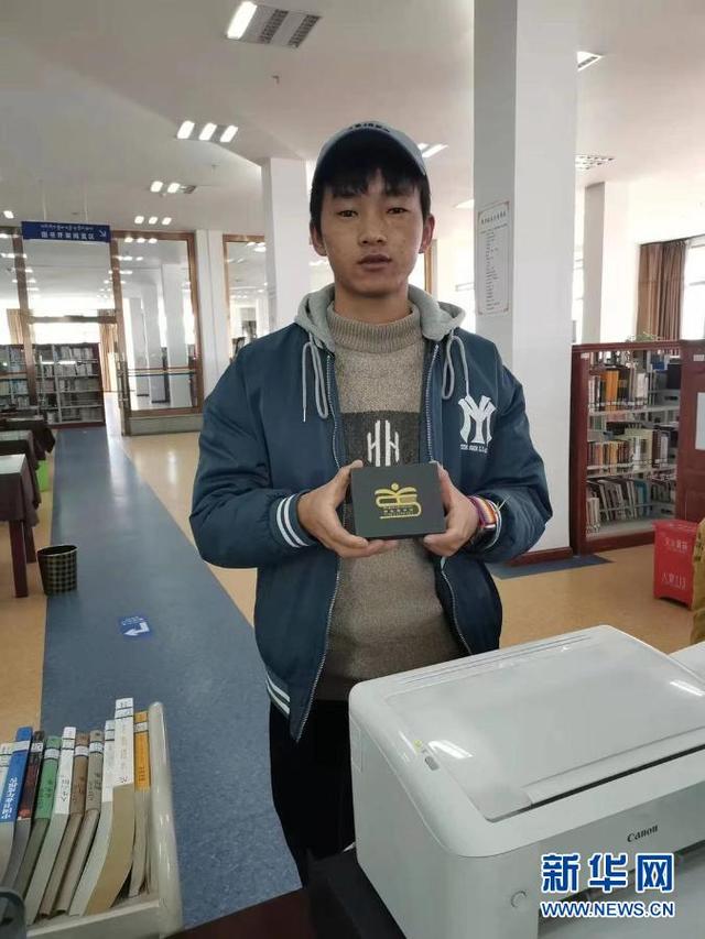 讀者在西藏自治區(qū)圖書館參加藏漢雙語閱讀平臺相關(guān)活動后,展示內(nèi)存有電子書、非物質(zhì)文化遺產(chǎn)傳承人紀錄片等內(nèi)容的“數(shù)字資源寶”優(yōu)盤獎品(資料照片)。新華社發(fā)(西藏自治區(qū)圖書館供圖)